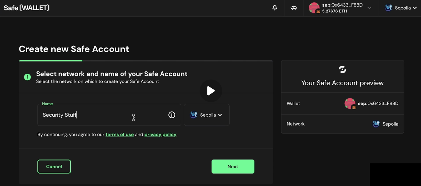 4.为 Safe 命名:连接钱包后,输入你希望为该 Safe 设置的名称。