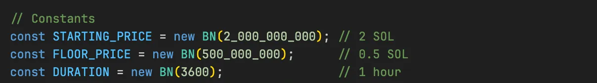 此前,我们在测试中初始化拍卖时设定了起始价格为 2 SOL,持续时间为 60 分钟。