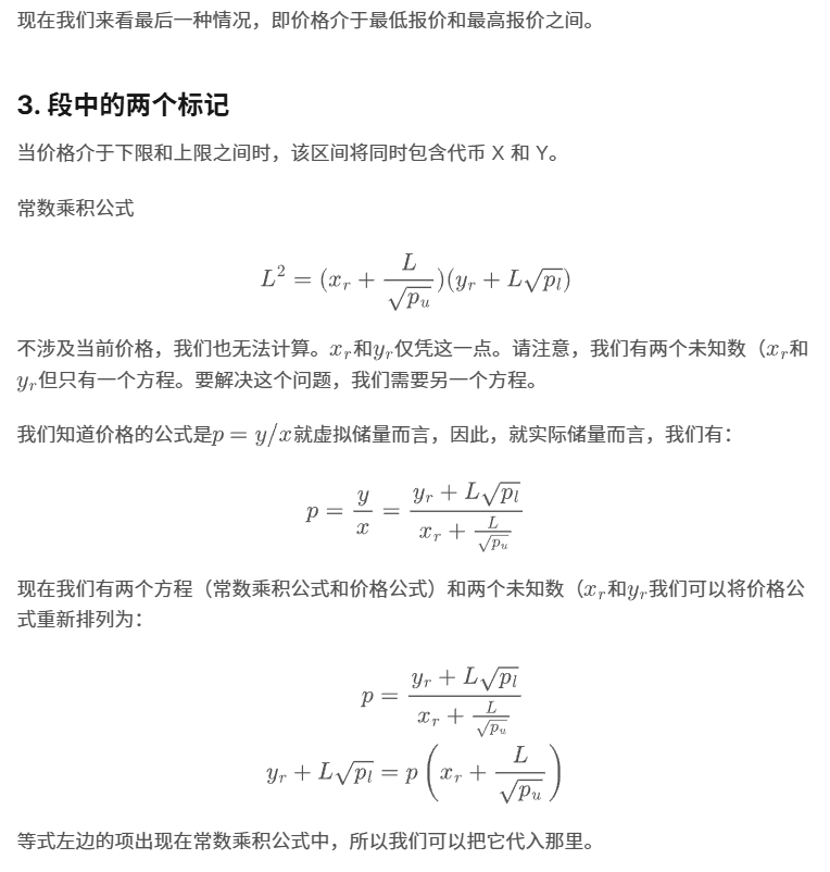 在每个交易段中,互换交易遵循与 Uniswap v2 相同的行为,并且不考虑手续费,必须保持价值不变。L 公式中的常数只要交换不跨越段的边界。